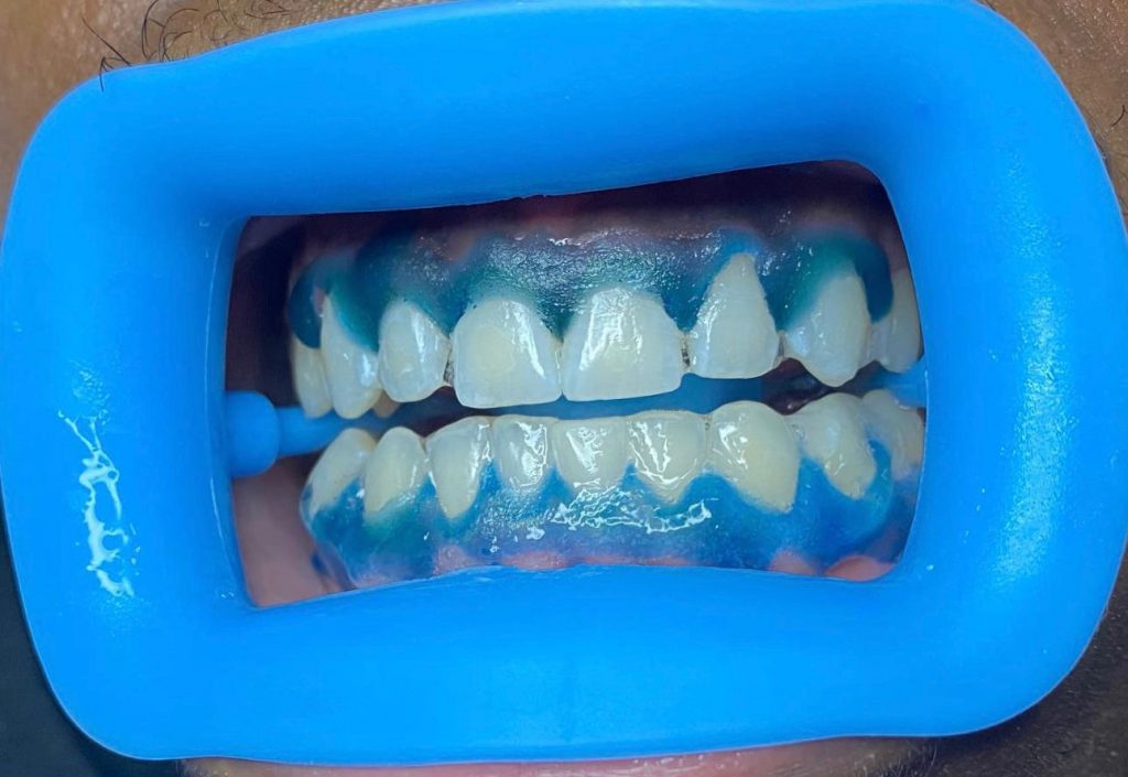 Elle consiste à appliquer du gel blanchissant assez dosé en peroxyde afin de pouvoir éclaircir la couleur de vos dents en deux séances seulement.